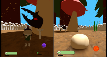 Bugshroom is a 2-player couch co-op game where you and your friend play as little mushroom creatures. You must go out into the scary forest and discover what it has to offer. Fight bugs, do parkour, and find collectibles. Be careful though, the local wildlife has a taste for fungi.